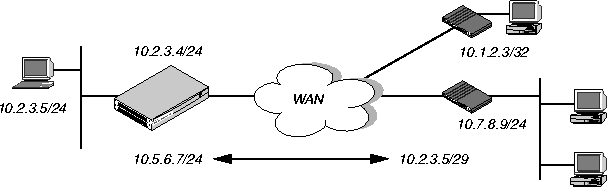 Mask = 255.255.255.248In the example address shown above, the mask specification indicates that 29 bits of the address will be used to specify the network. This is commonly referred to as a 29-bit subnet. The three remaining bits specify unique hosts.